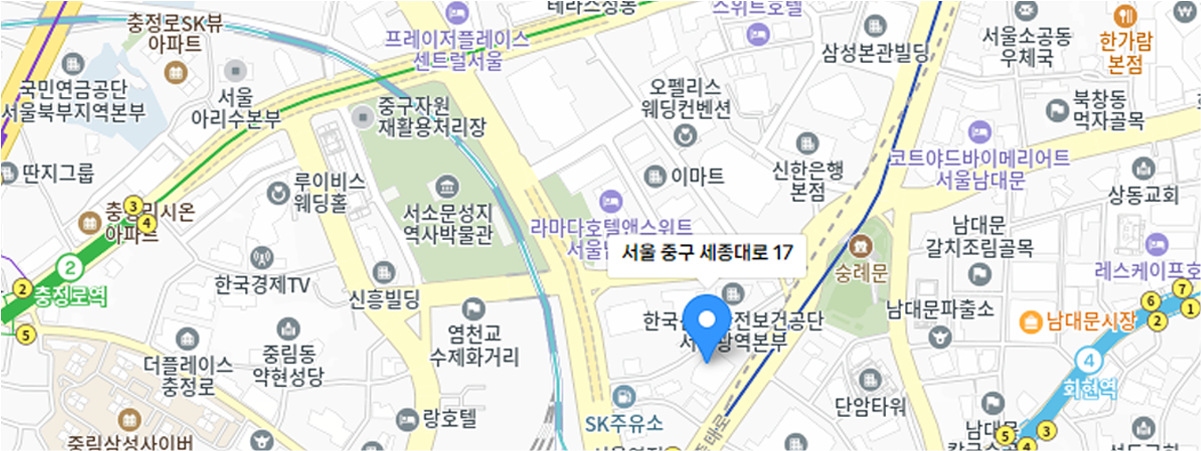 주소 (04512) 서울특별시 중구 세종대로 17, 그레이츠 숭례 13층(봉래동)